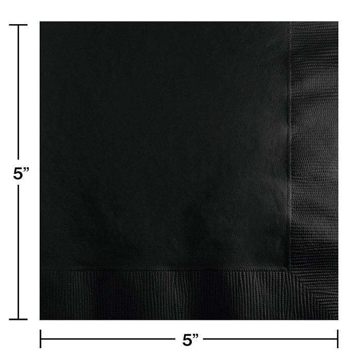 For your next special occasion, turn to our Black Velvet Beverage Napkins 3 ply (500/Case). These luxurious napkins are crafted with 3-ply facial quality tissue that is soft and strong. Each package includes 50 napkins that are 5" x 5" when unfolded and 1/4 fold when in use. With 10 packages per case and 500 napkins in total, you'll have plenty for your next gathering. Perfect for any event, these napkins are a modern addition to your party tableware and accessory collection. Enjoy the convenience and savings of buying in bulk with our discount prices.