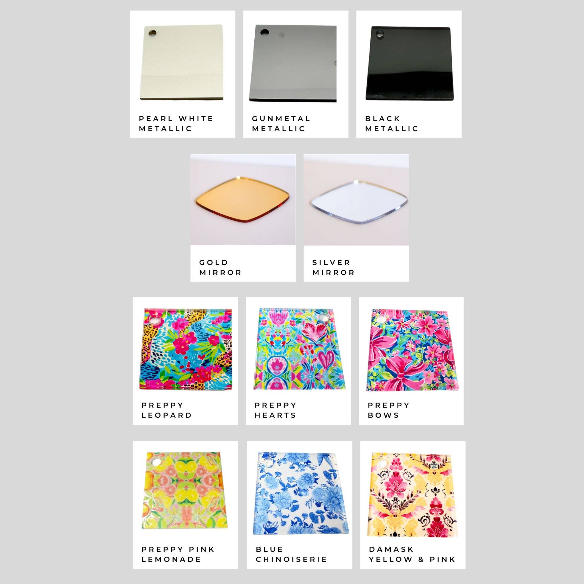 Laser cut acrylic greek letters with adhesive backing. Perfect for accessorizing bags, wallets, phones, decorative trays and more. Letters available: Alpha Beta Gamma Delta Epsilon Zeta Theta Kappa Mu Xi Omicron Pi Sigma Tau Phi Chi Omega