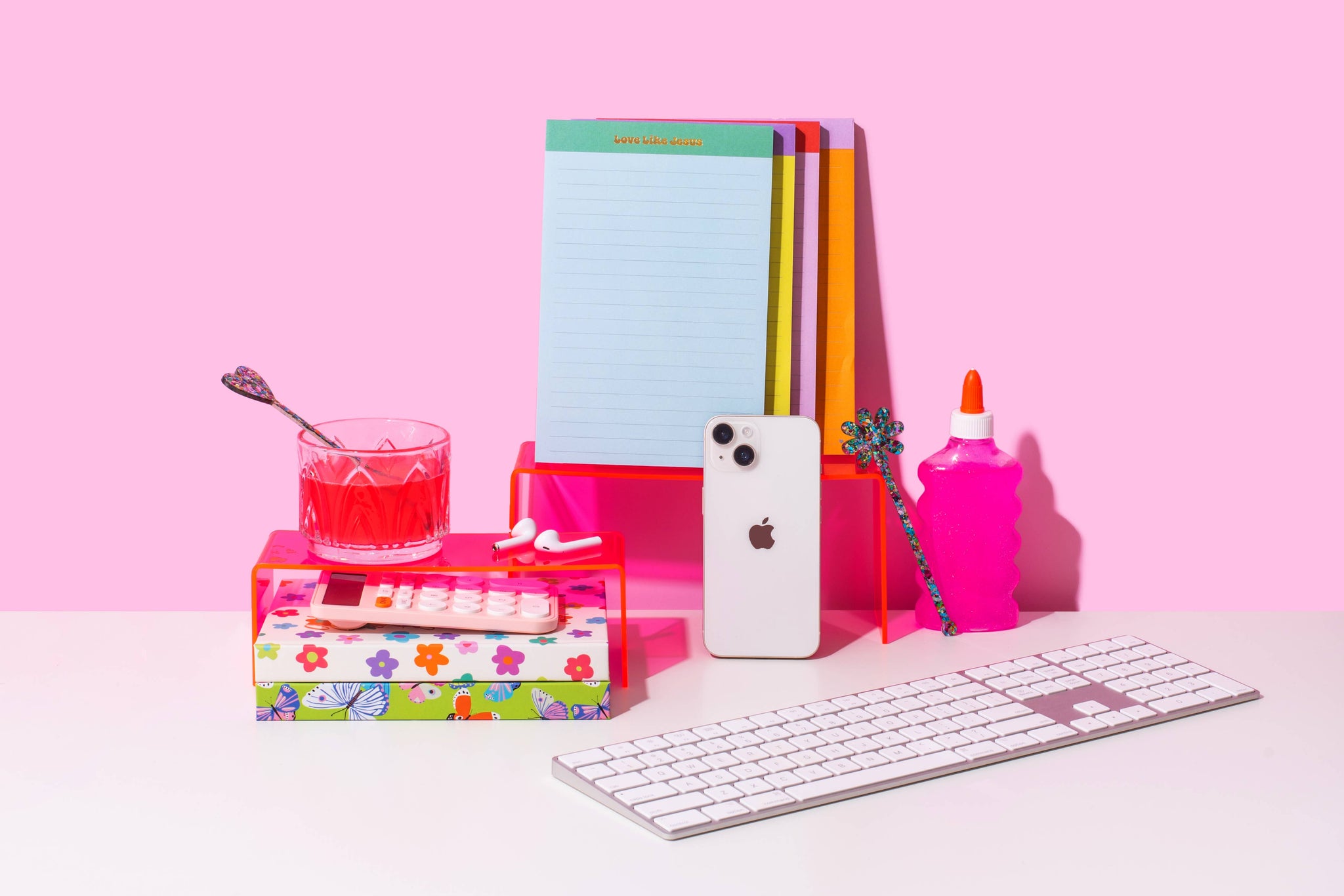 Merchandise your store and save shelf space with our 2 Piece Riser Set in iridescent pink acrylic! Perfect for showing off all of our amazing products! Details * Set of 2 risers * One taller, and one shorter, riser * Tall riser size: 9" x 4" x 4.25" * Short riser size: 8.5" x 4" x 2.9" * Made of pink acrylic * Imported